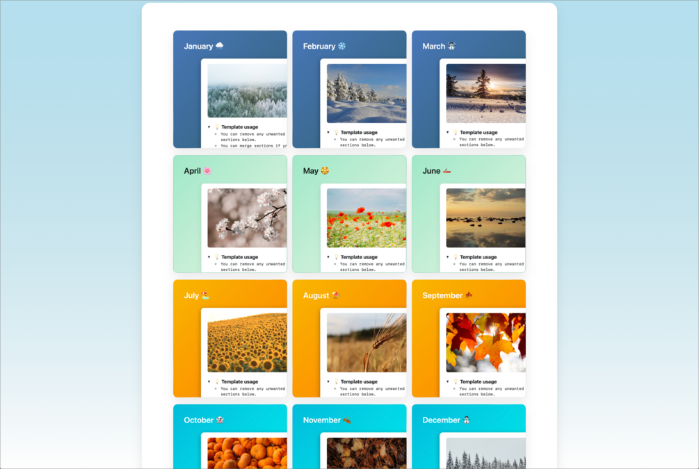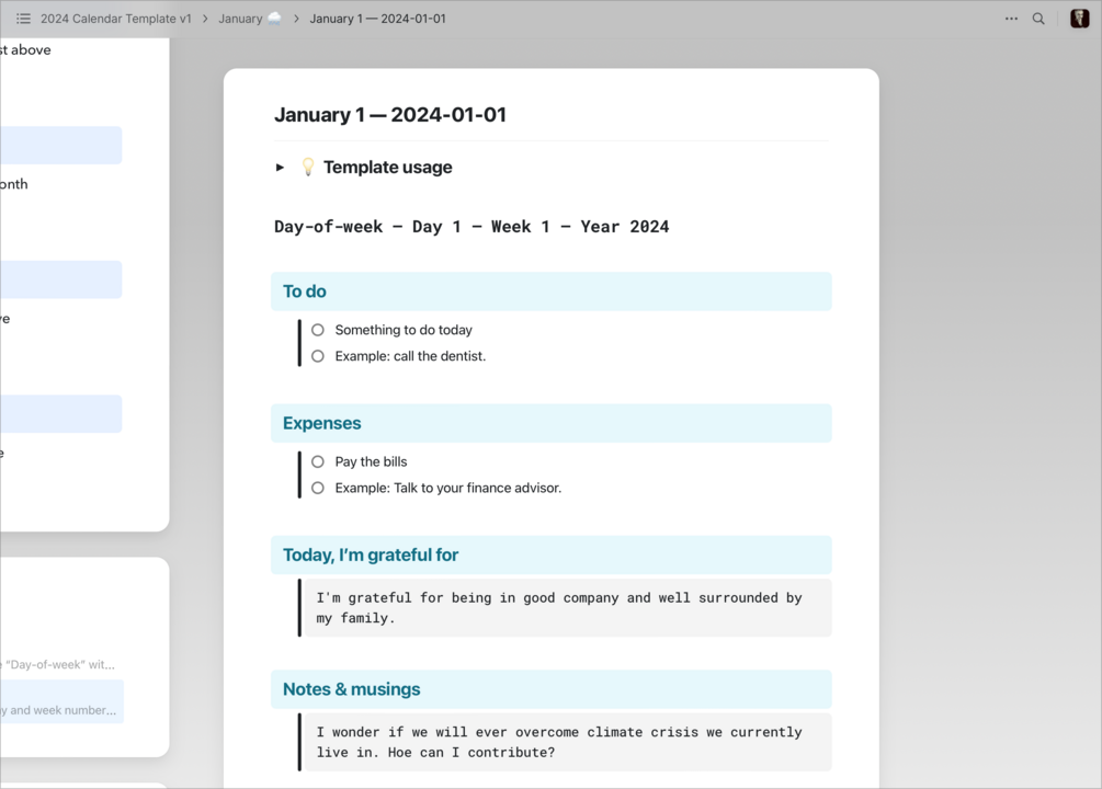 A Craft template containing the full 2024 Calendar. Get this template to get yourself ready to go through 2024 with everything you need: to-dos, thoughts, travel plans, professional goals, health, etc.